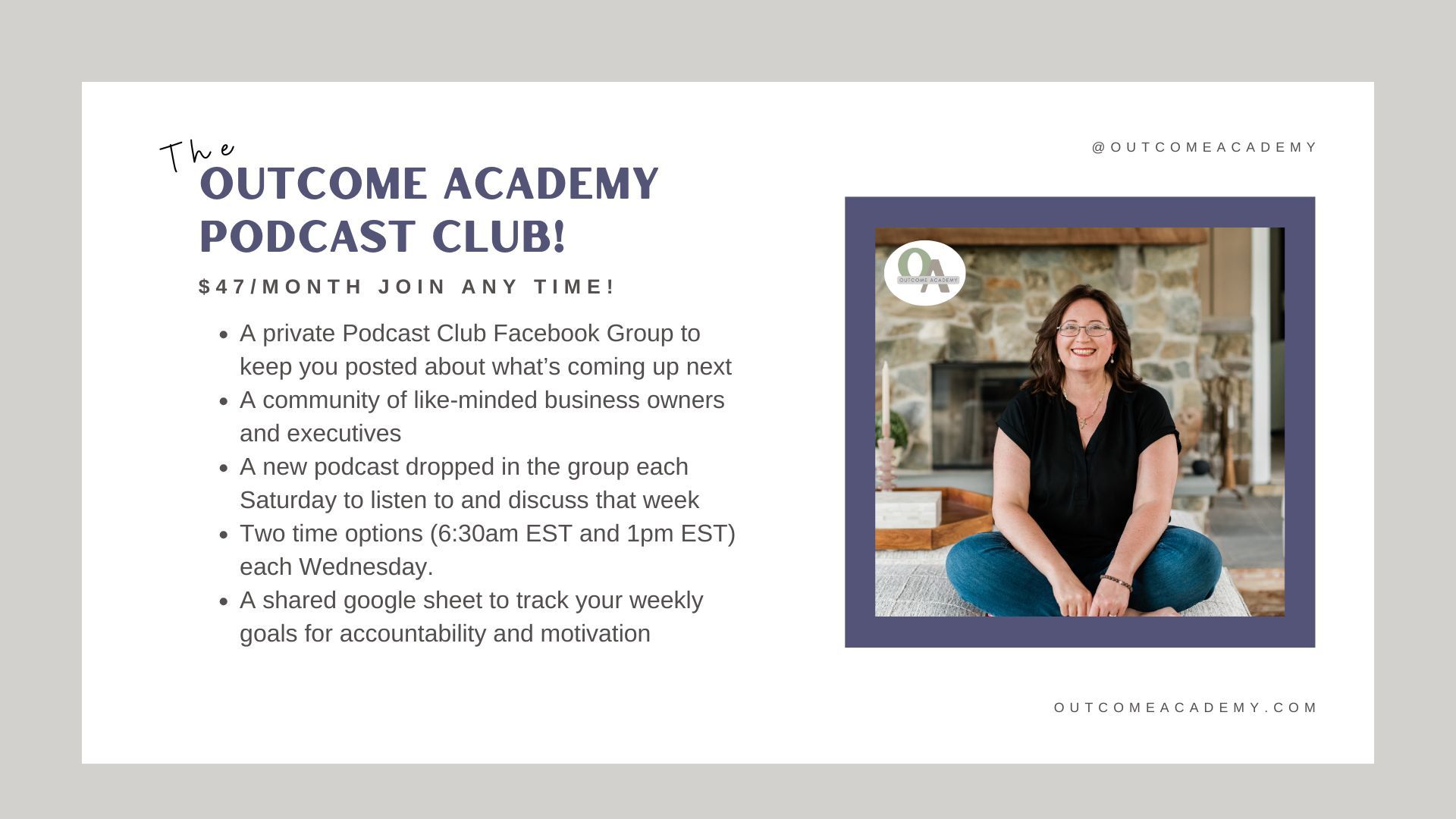 The Podcast Club is the easiest way to step into the Outcome Academy community and start building momentum immediately. While you're waiting for a cohort spot to open for our Mastermind, jump in here to keep your momentum going!